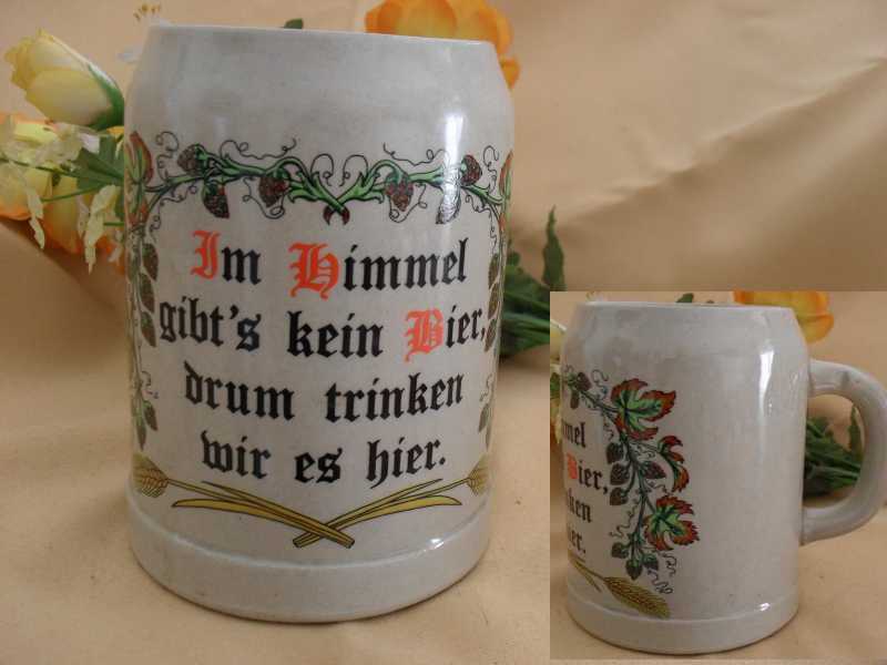 Bierkrug Bierhumpen aus Keramik mit Spruch Im Himmel u.s.w. Gerz