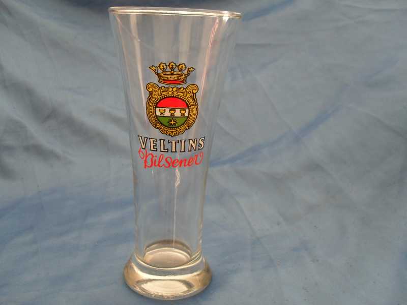 Artikelnummer: 0702 Altes Bierglas Biertulpe Veltins Pilsener Motiv Wappen und goldfarbene Krone Fassungevermoegen 0,25l Artikelnummer:0702