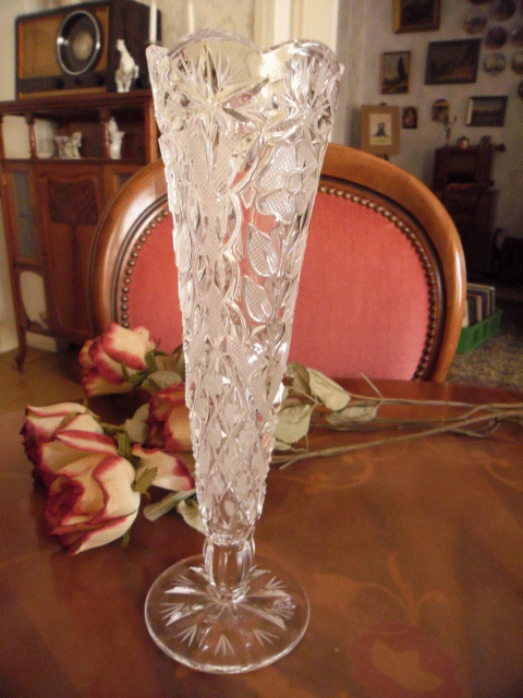 Blumenvase Kristallvase mit Sternen Blumen und Rautenmotiv Art Deco
