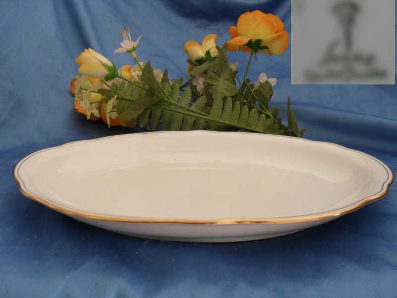 Artikelnummer: 0677 Grosse ovale weisse Fleischplatte Aufschnittplatte Servierteller Porzellan Goldrand lang 28 cm breit 19 cm Schirnding Qualität Porzellan Artikelnummer:0677