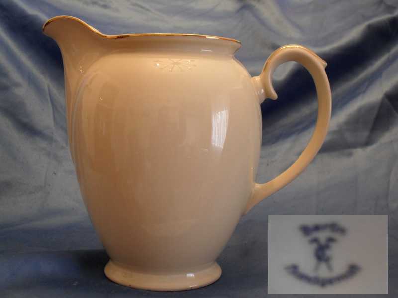 Artikelnummer: 0400 Alter elfenbeinfarbener Milchkrug Milchtopf Wasserkrug Porzellan Goldrand hoch 17,6 cm Fassungsvermoegen 1,5 l Berlin C handbemalt Nr. 125 Artikelnummer:0400