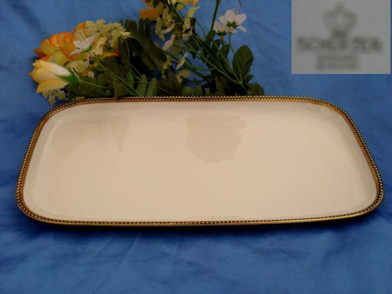 Alte Kuchenplatte Servierplatte Aufschnittplatte mit schwarz und goldenen Design lang ca. 28,5 cm breit ca. 14,5 cm hoch ca. 2 cm Scherzer Bavaria Germany Nr.104918