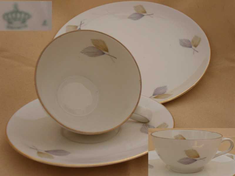 Artikelnummer: 0862 Sammelgedeck Sammeltasse Porzellan Blattmotiv 50er 60er Jahre Tasse Durchmesser 11,5 cm mit Henkel Kuchenteller Durchmesser 19,5 cm Untertasse Durchmesser 15 cm mit Krone Bavaria. Artikelnummer:0862