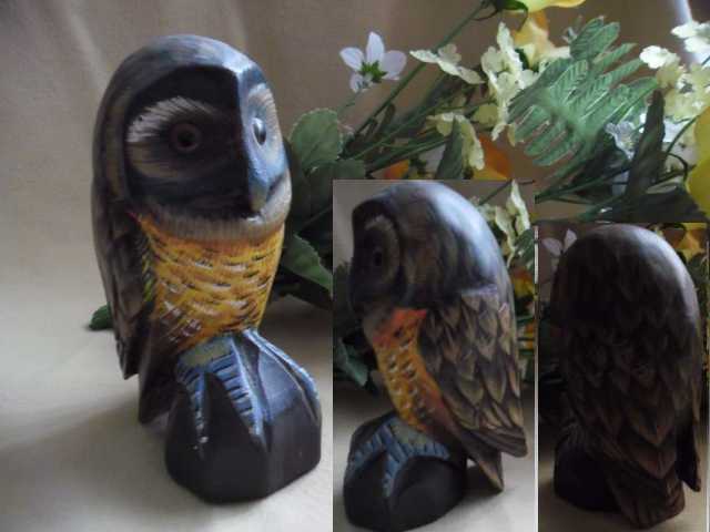 Artikelnummer: 1083 Handeschnitzte und handbemalte Eule Uhu Kauz Holz naturgetreu mit den Glasaugen Handarbeit gross. 10,5 cm Artikelnummer:1083