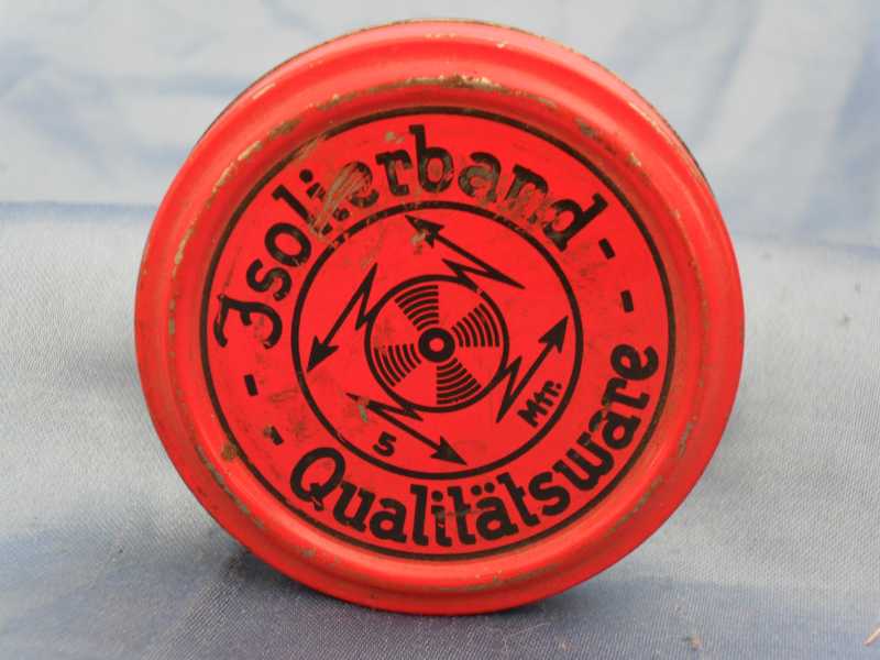 Blechdose runde Form rot mit schwarzer Schrift Vorwerk Isolierband