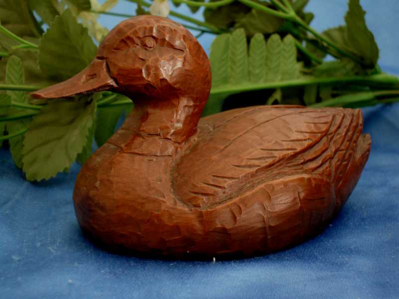 Braune Ente naturgetreu gearbeitet hoch ca. 7,5 cm lang ca. 12,5 cm mit Schnabel und Schwanz aus zerstoßener Pekannuss und Resin handgefertigt. Gewicht ca. 180 Gramm von Red Mill 1982