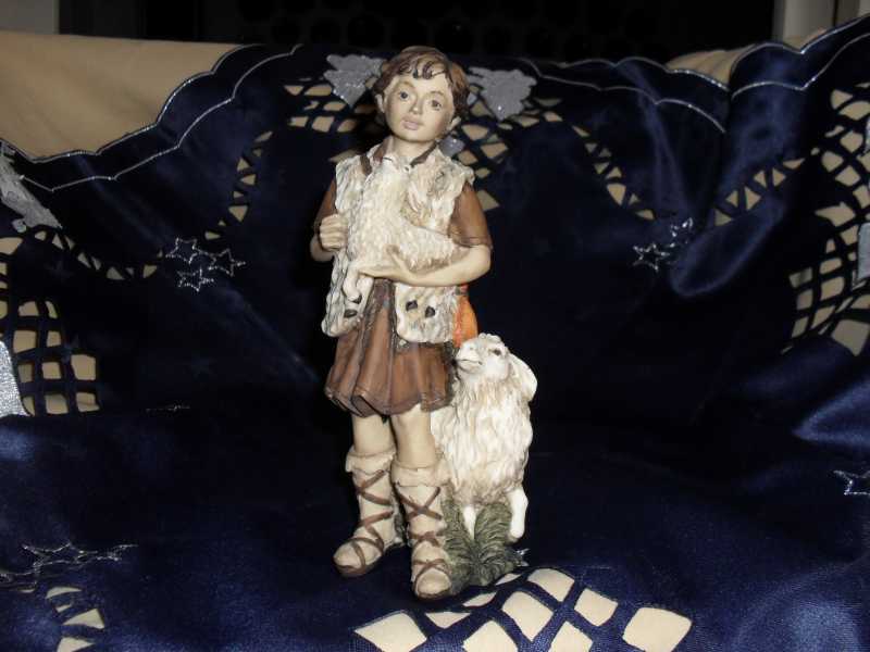 Große Figur Hirtenjunge mit Lamm und Schaf naturgetreu gearbeitet handbemalt groß ca. 22 cm Material Alabaster und Gießharz Gewicht ca.700 Gramm von BG Made in Italy