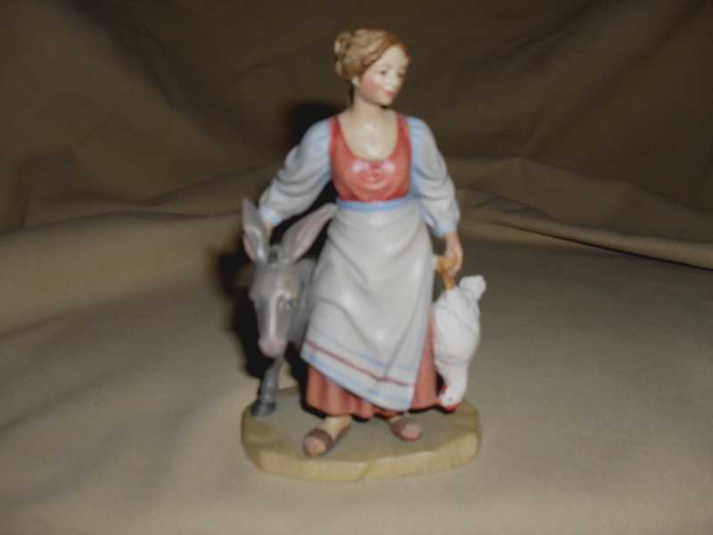 Artikelnummer: 0034 Holzfigur Magd mit Gans und Esel handbemalt naturgetreu gearbeitet hoch 12 cm Massstab 1:15 von Wood Carvings Trademark Großbritannien Artikelnummer:0034