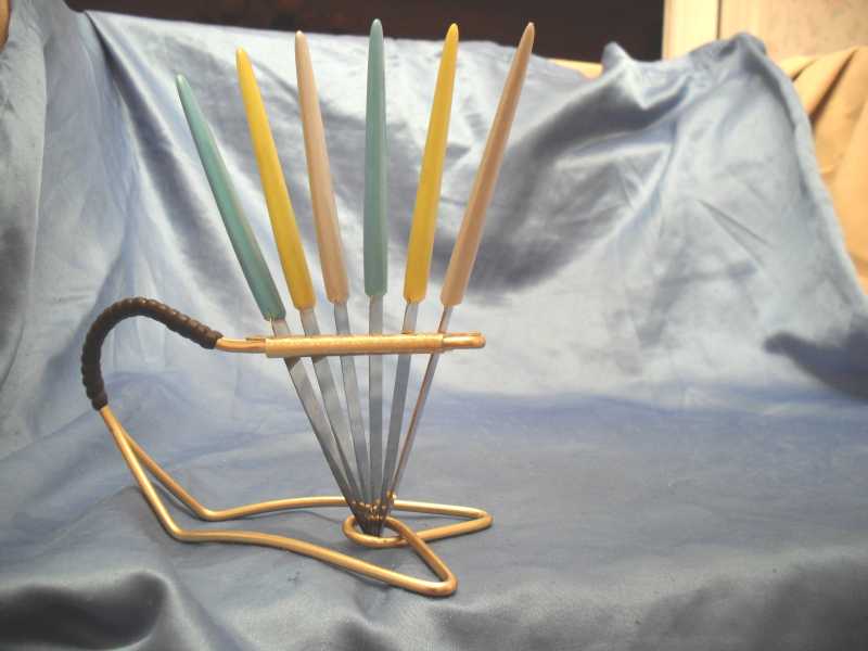 Artikelnummer: 0065 Messerset besteht aus sechs farbige Messer Ständer 50er Jahre Artikelnummer:0065
