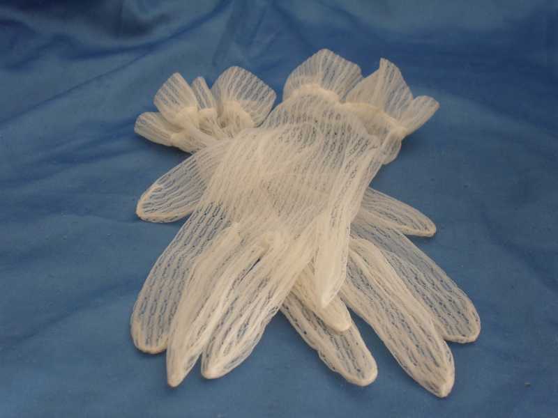 Artikelnummer: 0166 Weisse Damenhandschuhe Perlonhandschuhe mit Muster Original 50er 60er Jahre oben mit Gummizug Groeße S oder 6-7 Artikelnummer:0166